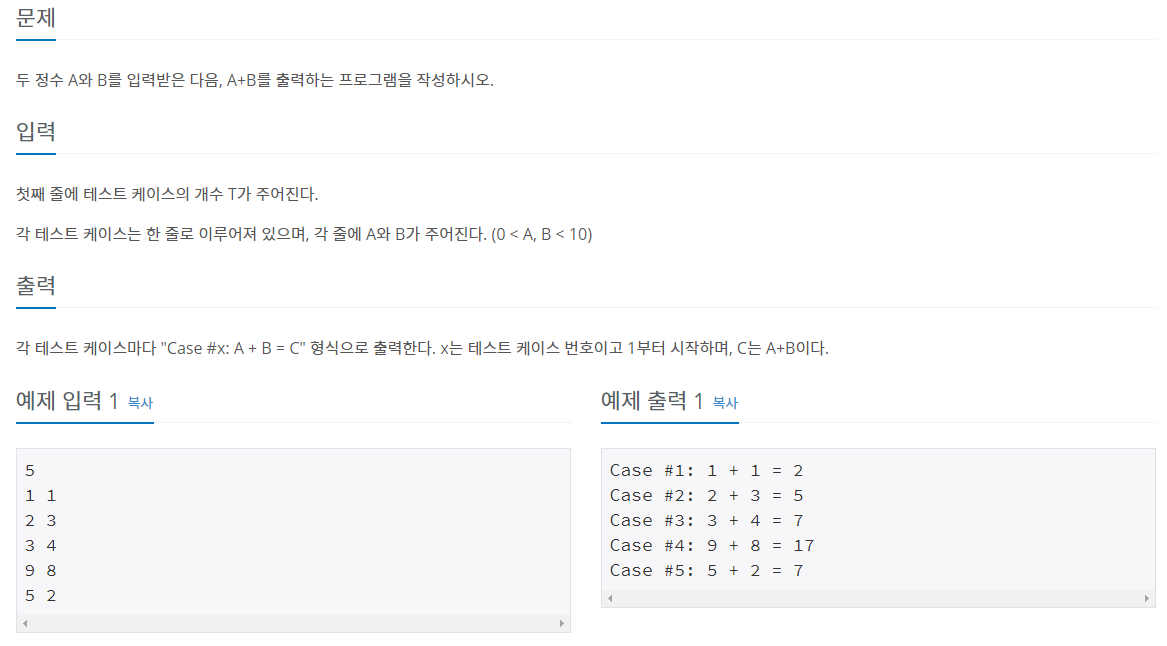 출제 링크 : https://www.acmicpc.net/problem/11022