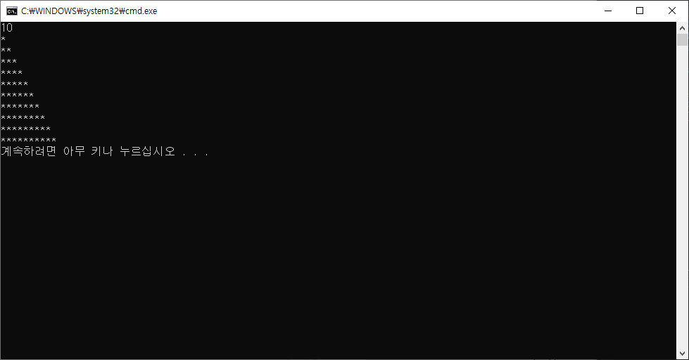 첫째 줄에는 별 1개, 둘째 줄에는 별 2개, N번째 줄에는 별 N개를 찍는 문제