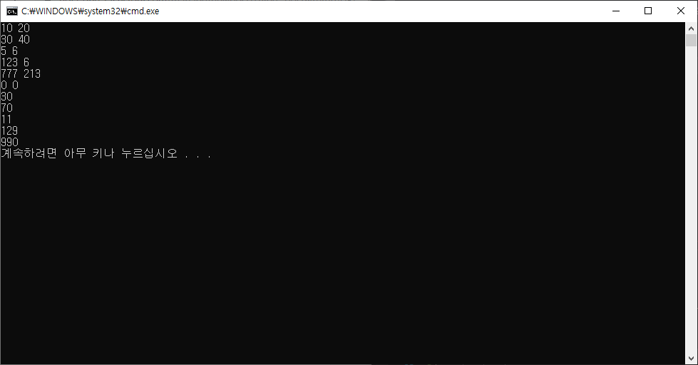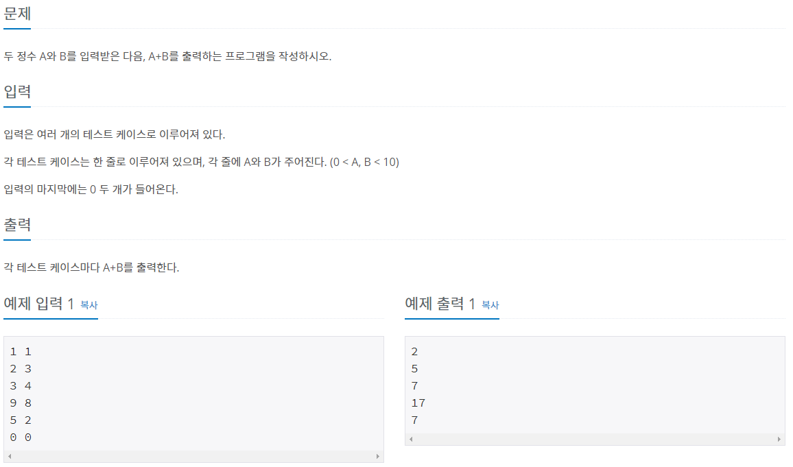 출제 링크 : https://www.acmicpc.net/problem/10952