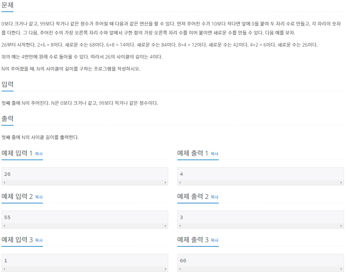출제 링크 : https://www.acmicpc.net/problem/1110