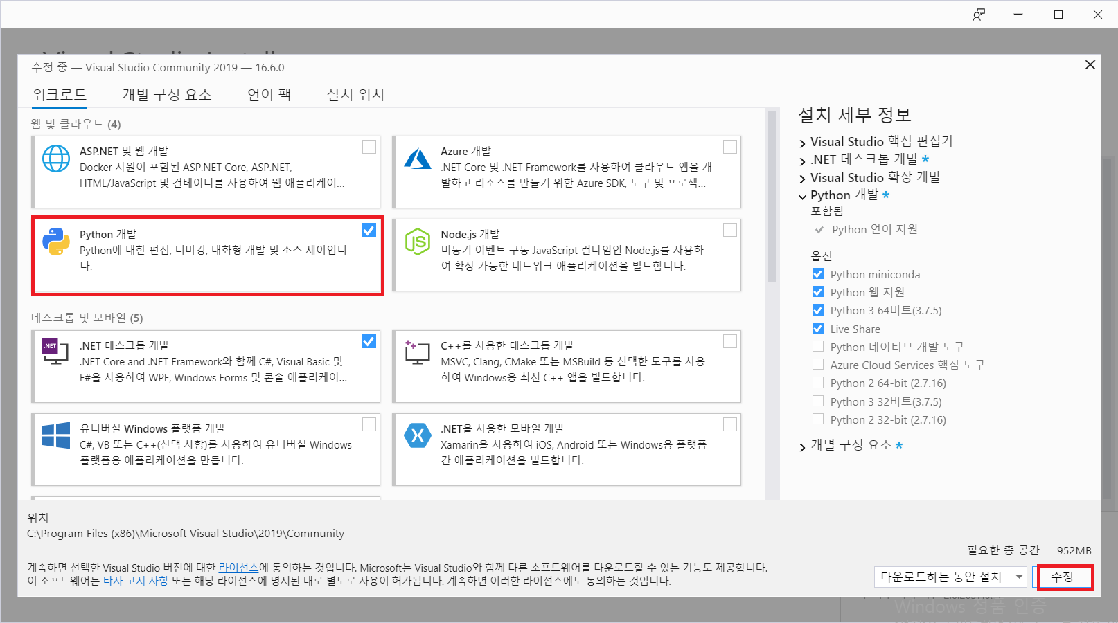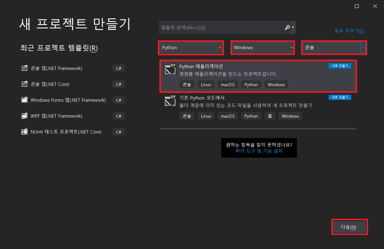 그리고 아래의 표시된 곳처럼 필터링을 걸어주면 Python을 사용할 준비가 되었습니다!