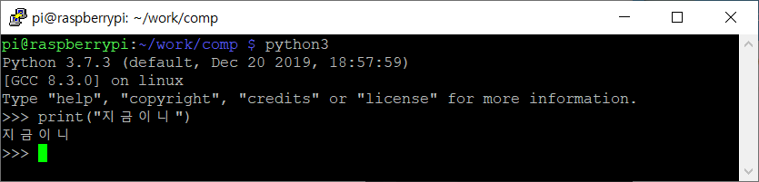comp폴더로 이동한 후 python3 라고 입력하면 바로 내장된 파이썬을 활용할 수 있습니다!!