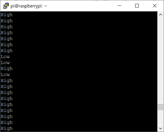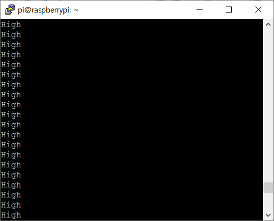 실행을 했을때는 High가 계속 뜨는 것을 확인할 수 있습니다.