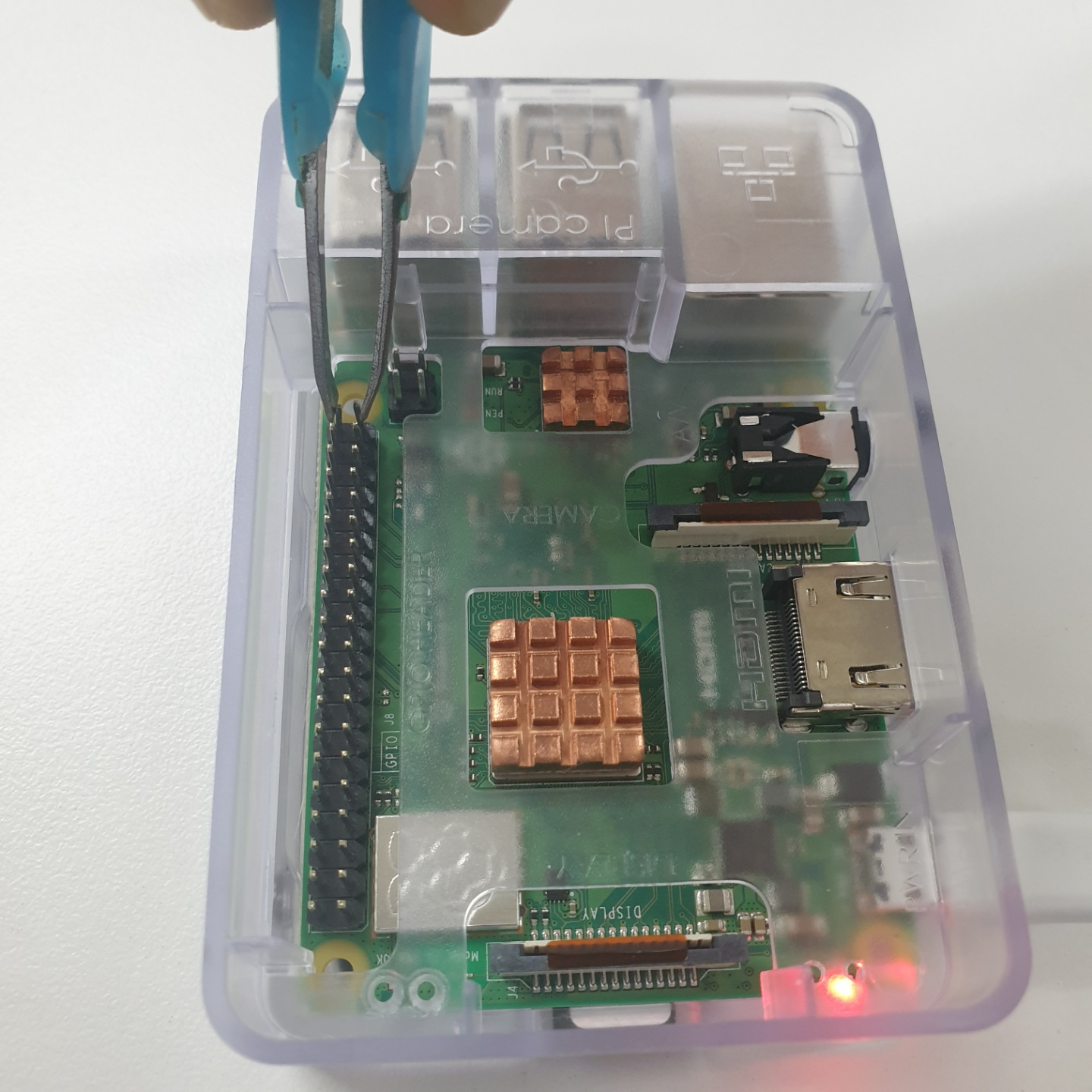 저는 Ground와 GPIO 21번에다가 실험을 하였습니다.